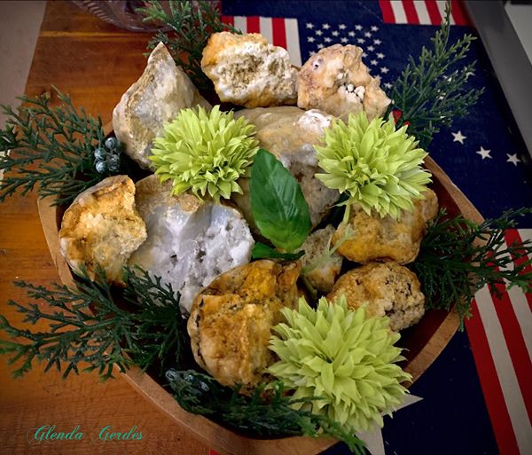 Let me tell you… it takes a special person to see beauty in some rocks. These are pieces… throwaways, if you will. Some can see it because they take the time and effort to look very close for the inclusions, scars, gems that sparkle when most of the time it is taken for granted. Some “rocks” seen alongside the road or in a gravel pit may not be pretty from afar, but pick one up, run water over it and you will see its true beauty shine through with sparkles as if to say thank you for taking the time to notice. Cut it open and see what’s inside. Some have beautiful crystals! A pure beauty that most people don’t take the time and effort to search for. But to think that this is a tiny pebble or geode that God created initially and the earth created thousands, sometimes millions of years ago. Amazing!