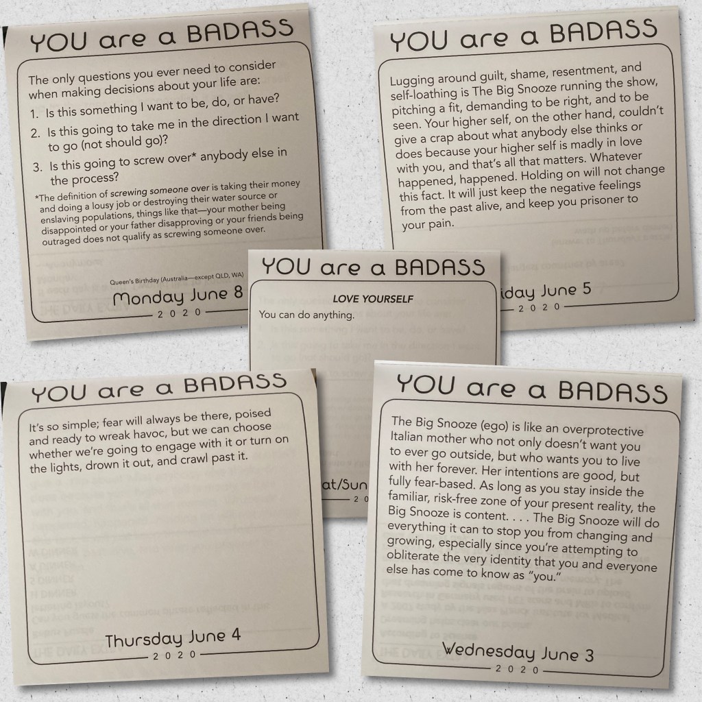 I am grateful for my daughter-in-law Sarah who gave me this “YOU are a BADASS” calendar for Christmas last year.