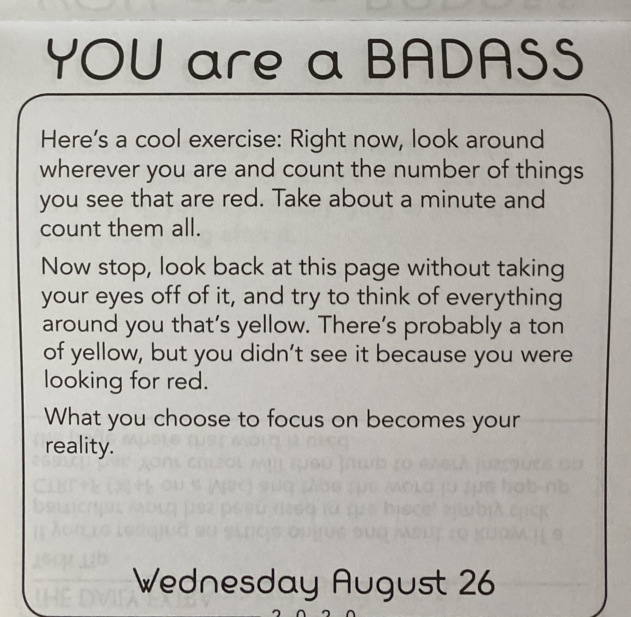 However, in regard to “What you choose to focus on becomes your reality”: