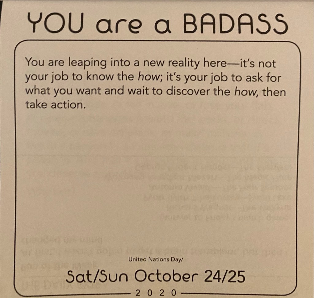 Thank you for the way forward after the calendar entry I didn’t read on Friday in Badassery 10/23 that talked about pity parties.