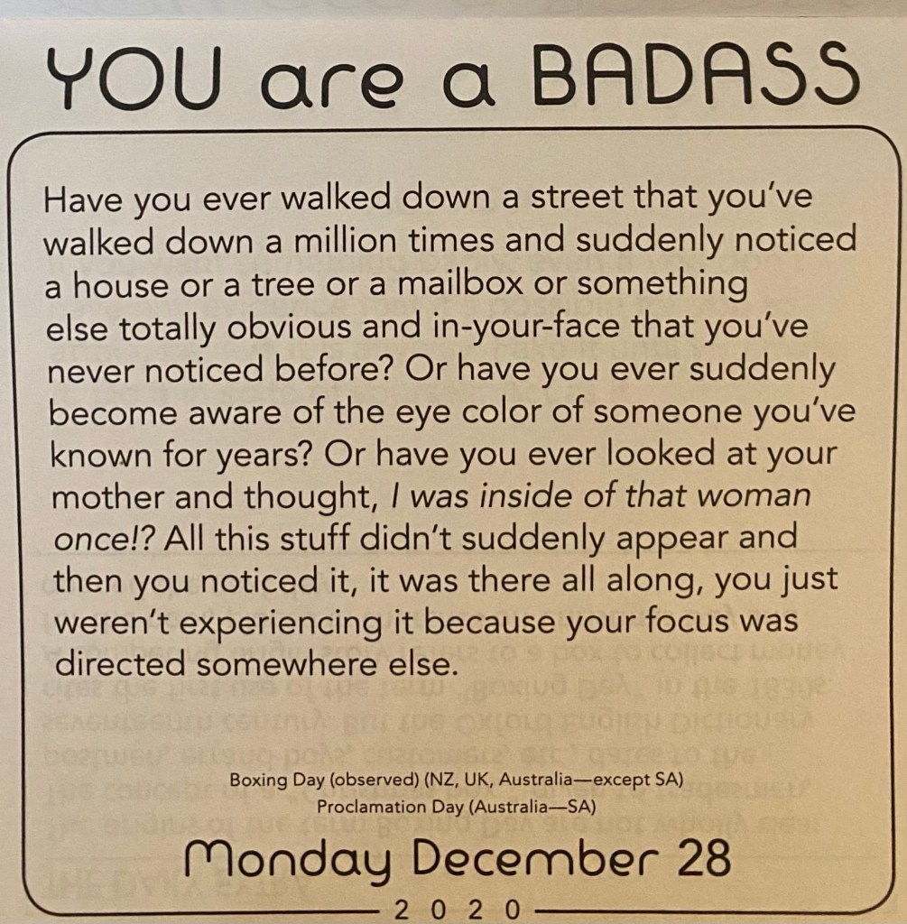 Thanks for the reminder that sometimes I am not as observant as I should be, too preoccupied with my overthinking mind, or perhaps I just have my head stuck up my a$$ much of the time.